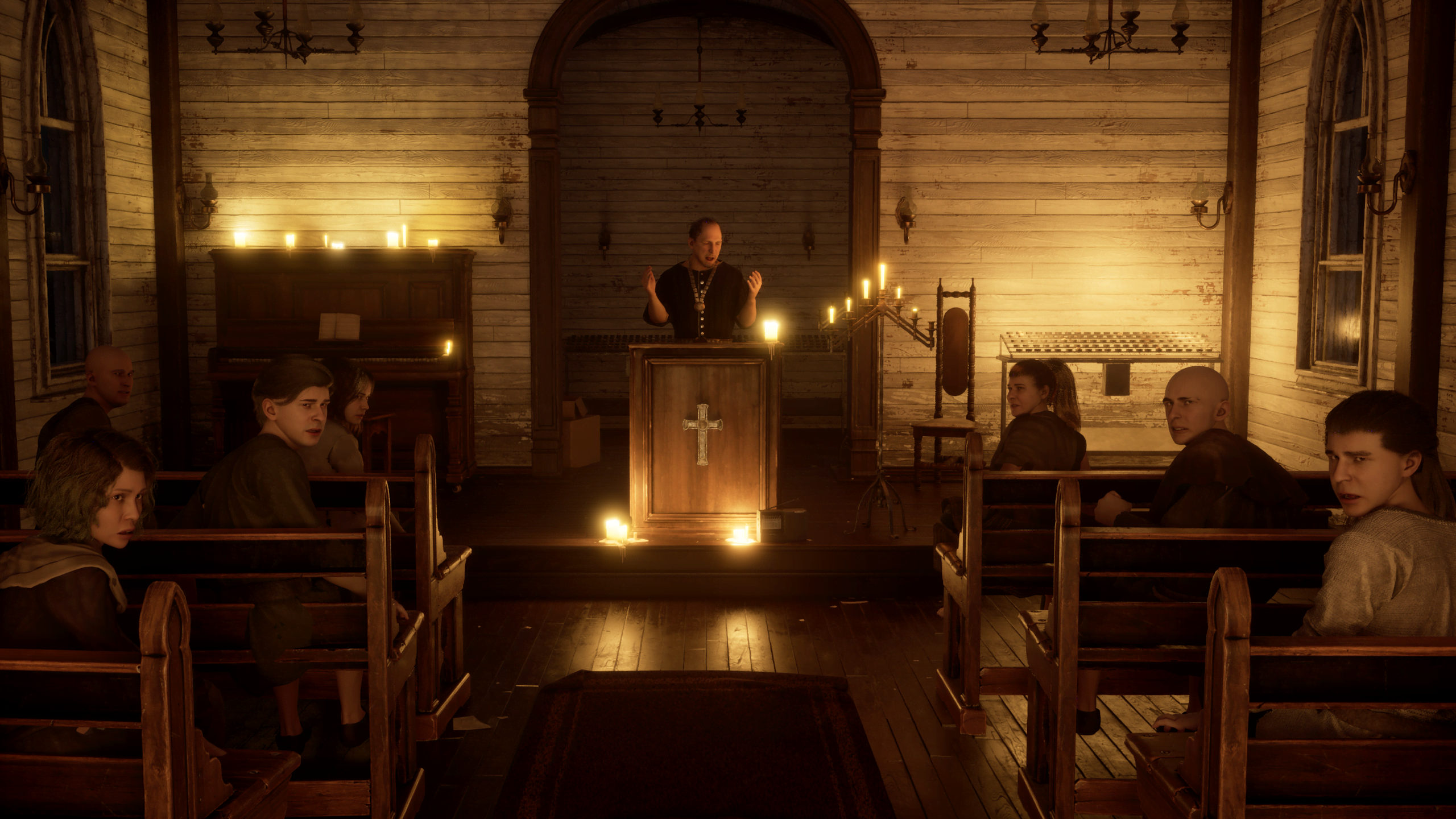 - Cinematic psychological survival horror set on a fog-covered cult island.