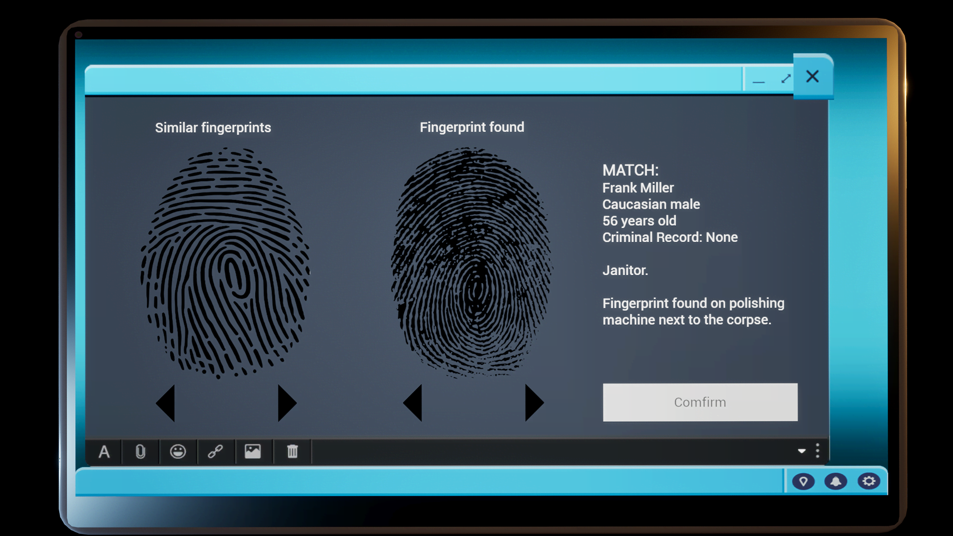 - Detail driven gameplay where every clue can change the entire case.